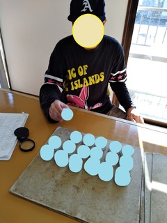 今日もみなさんと一緒に施設内作業 おちょこシール貼りを行いました。