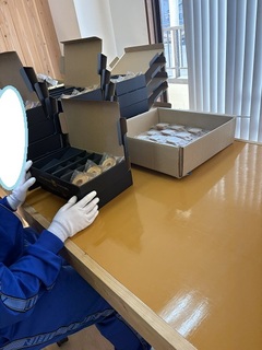 今日は「箱詰めの納品」と「転写シール貼り」の2チームに分かれて作業を進めました。