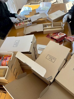 昨日に引き続き、今日は箱詰め作業を行いました。