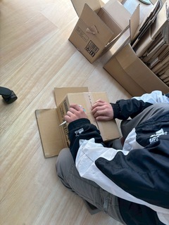 昨日の箱詰め作業がやり切れなく残っていたため今日の朝一で作業を取り組みました。