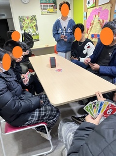今日のキッズの活動は、テーブルホッケーで対決!です。
