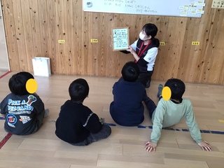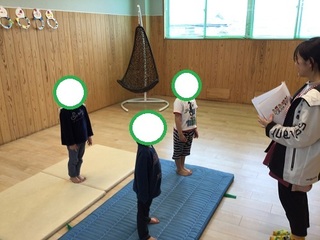 動物やストレッチしている絵を見せてみんなで真似っこ遊びで・・・
