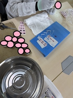 今日の活動は施設内軽作業おちょこシール貼り