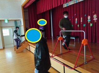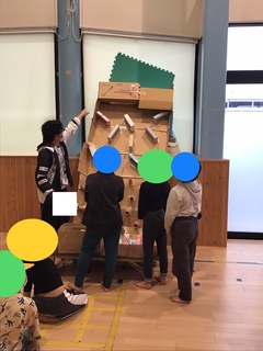 今日のキッズの活動は巨大ピンボールです。活動の始めにピンボールって何だろう、ピンボールのお話をしました。