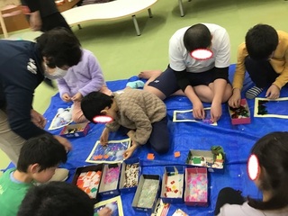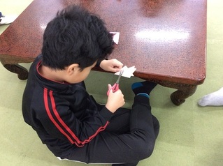 週末は少し早く学校から帰ってきたお友だちが、工作に取り組んでいました