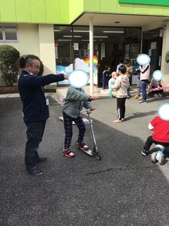 ブランコに乗ったり、トミカで遊んだり、工作をしたり、ストーブの掃除をしてくれたり(笑)と