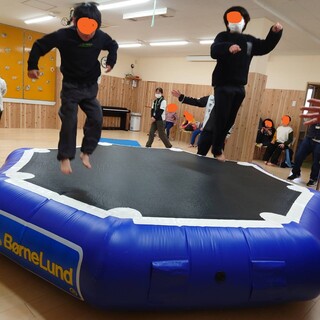 今日はジャングルジムと巨大トランポリンを繋げて遊びました^^