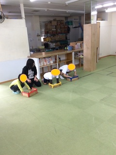 朝から雨が降っていたため外での活動ではなく室内の活動に変更して行いました(^▽^)/