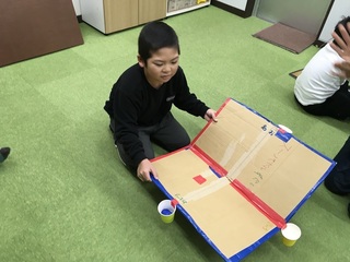 今日の活動は「ダンボールでボールコロコロ」をやっていきました。