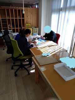 午前中は、箱詰め作業の納品チームと転写シール貼りチームに分かれて作業を行いました。