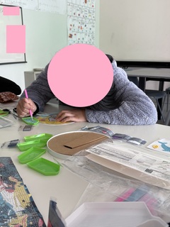 番号に合わせてビーズを付けたり、どんなマークや文字にするのか考えたりしていましたよ。