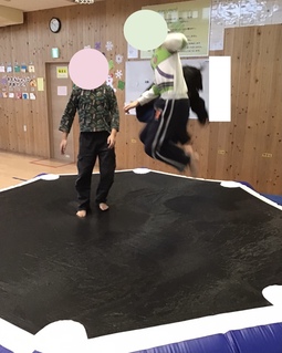 今日の活動は トランポリンです。