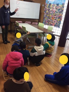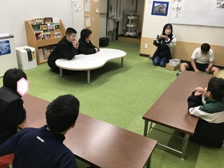 最初にみんなで 説明を聞きます。