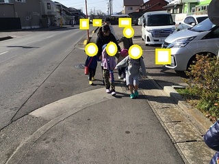 道路を渡るとき、手を挙げて渡っているお友だちがいました♡
