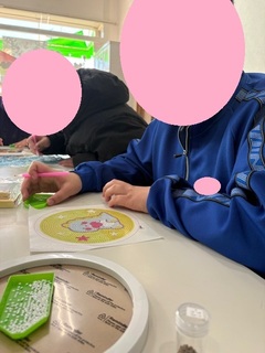 今回も前回から始めたプレートのビーズアートを行っていきました。
