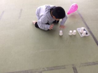 午前の活動は風船紙コップでした。