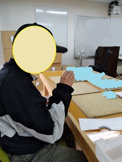 職員と利用者さんで貼り師の作業をコツコツと進めていきました