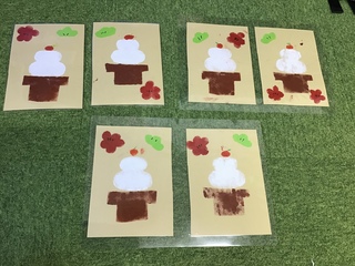 絵の具を使い、まるでスタンプのような作品に取り組んでいきます。