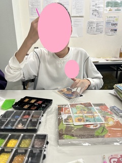 今日の活動は、みんなが楽しみにしているビーズアートです✨