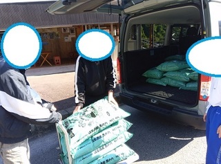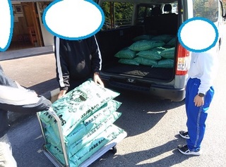 今日の軽作業は「堆肥の納品」と「おちょこシール貼り」に分かれて作業を行いました。