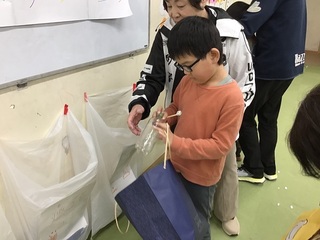 今日は、牛乳パックを使った工作 「紙の面ボール作り」を行いました。