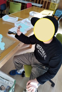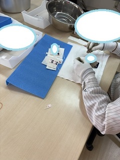 施設に入ると作業の準備は個々に行い 必要な道具を机に並べて作業開始です
