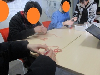 早く入室したお子さんは宿題をしたり昨日行った活動のカゴ作りをしたりして過ごしてみえました。