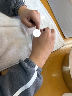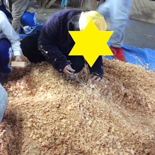 今日は馬房内でおが粉を広げて、おが粉の中から木材やごみなどなどを探す活動を行いました。