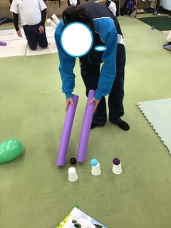 今日の活動はビー玉運びでした。