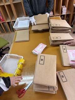 さて今日は一日ガッツリ袋つめ、折り込み作業です。