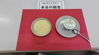 朝食は、「たまごぞうすい」「ヨーグルト」でした。