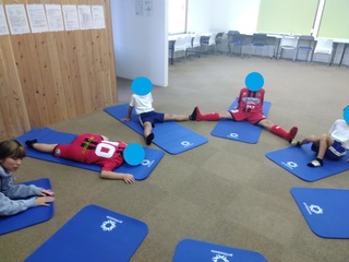 月曜日はスポレクです。「跳び箱」「馬跳び」の前にストレッチと筋トレを行います。