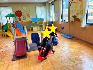 今日はペットボトルキャップや積み木を使って、約40分の活動時間内でどのくらいの