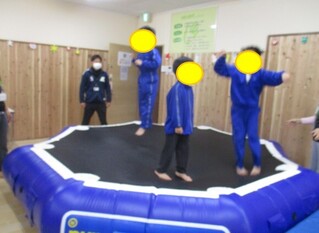 今日はトランポリンの日でした。子どもたちは最初に自分のグループを写真カードで確認し、順番をしっかり理解して参加することができました。