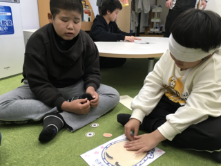今日の午前の活動は「福笑い・ダルマ落とし」をやっていきました。